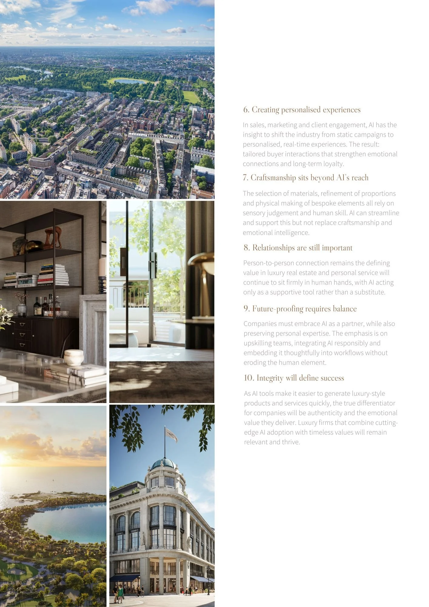 This report shares what is working now, what will matter next and how to adopt AI responsibly. I hope it encourages you to explore one small step in your own practice. Pilot a workflow. Spend time learning with your team. Put simple governance in place. If we approach this thoughtfully, we can deliver more meaningful experiences while keeping people and relationships at the centre. The Luxury Property Forum will continue to support you on that journey.