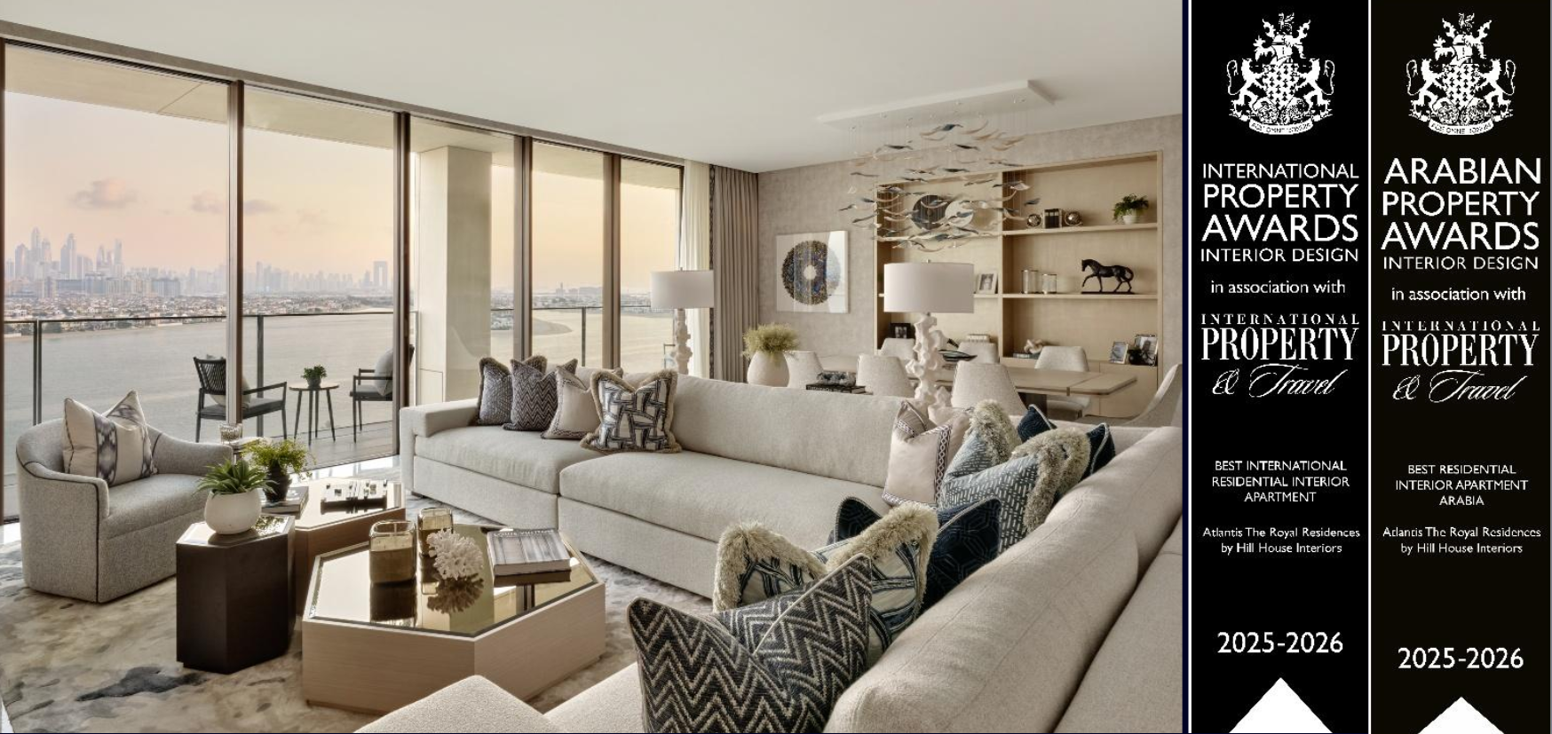 The winning project is an exclusive private apartment within Atlantis The Royal Residences, one of Dubai’s most architecturally ambitious and prestigious residential addresses. This international recognition marks a significant milestone for the established British design and architectural studio, which expanded into the Middle East almost three years ago. Since opening its Dubai office, Hill House Interiors has built a strong regional presence, delivering highly tailored residential interiors for discerning private clients and developers across the UAE and beyond.