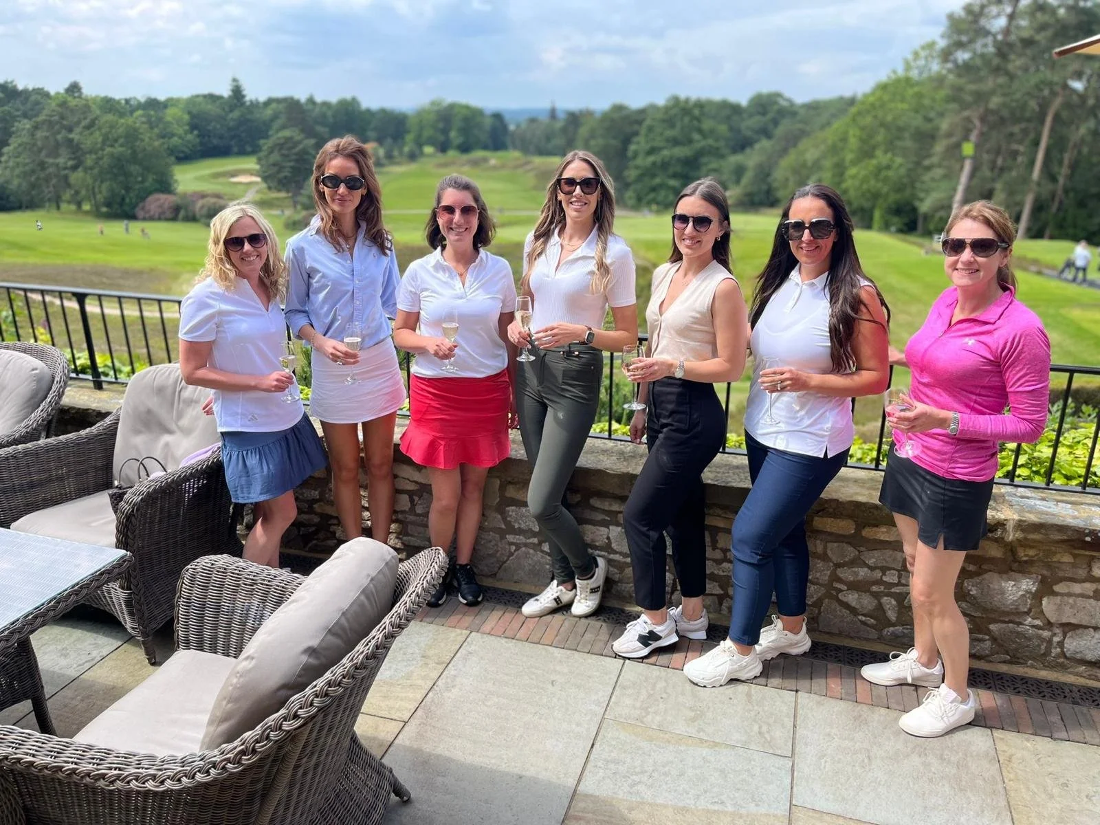 Sitting on the terrace of St Georges Hill Golf Club enjoying an amazing lunch, overlooking the course with nothing but a perfectly manicured golf course in sight, when a member of another society appears with a bottle of champagne for our table because they had scored a hole in one!